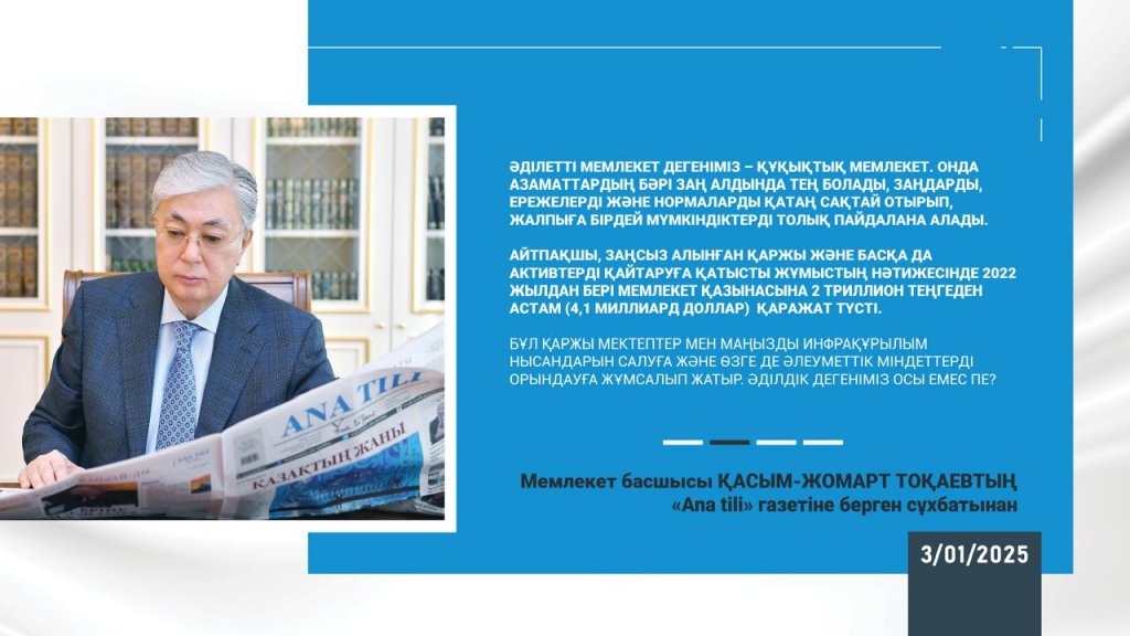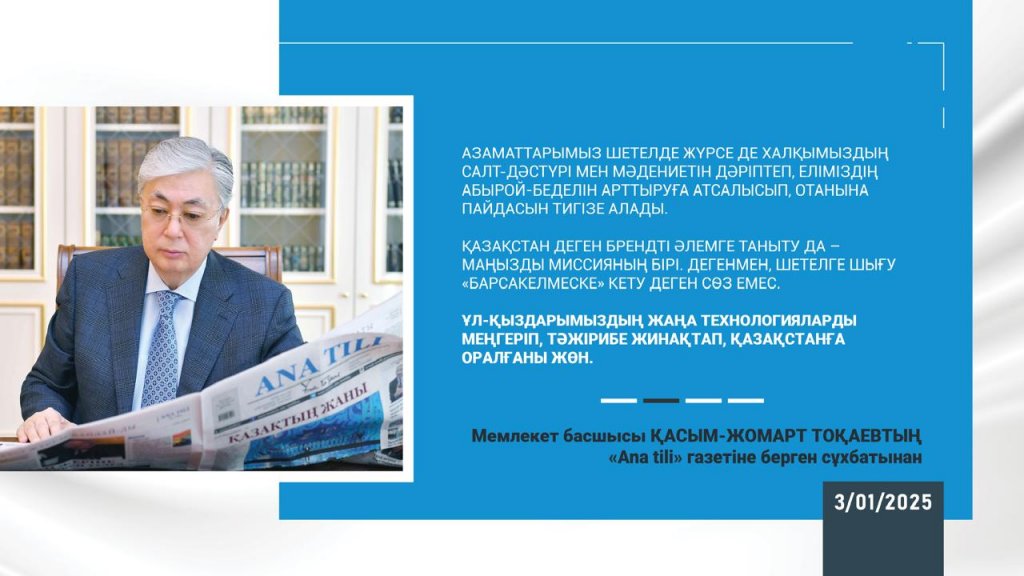 В газете "Ана тілі" опубликовано обширное интервью Президента Казахстана Касым-Жомарта Токаев