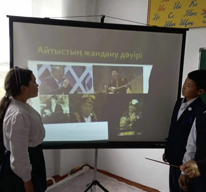 " Айтыс - халық мұрасы" атты тәрбие сағаты өткізілді. Мақсаты: айтыс өнерінен үзінді тыңдау, оқушыларды айтыс өнеріне қызықтыру.